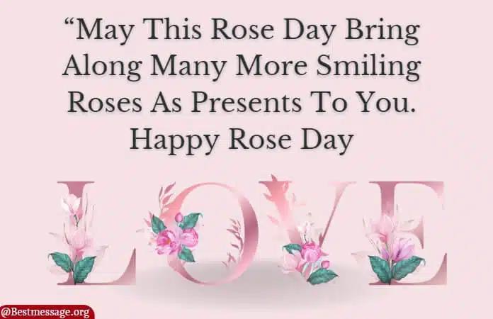 “May this Rose Day bring along many more smiling roses as presents to you. Happy Rose Day.”