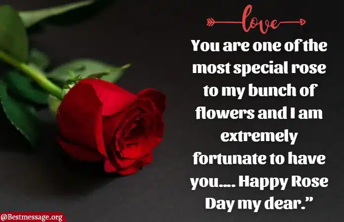 “You are one of the most special rose to my bunch of flowers and I am extremely fortunate to have you…. Happy Rose Day my dear.”