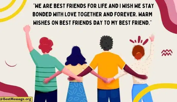 “We are best friends for life and I wish we stay bonded with love together and forever. Warm wishes on Best Friends Day to my best friend.”
