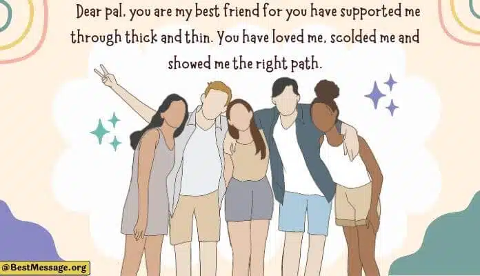 13). Dear pal, you are my best friend for you have supported me through thick and thin. You have loved me, scolded me and showed me the right path. Warm wishes to you on Best Friend’s Day.