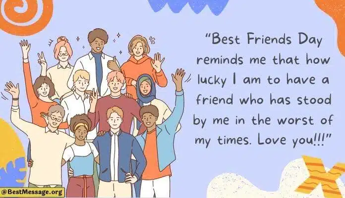 “The occasion of Best Friends Day reminds me that I am truly lucky to have you as my best friend forever because you understand me the best. Warm wishes on Best Friends Day.”