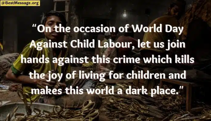 Given below is the collection of latest World Day Against Child Labour Messages, quotes, sayings and greetings to share with everyone on Facebook, WhatsApp status.